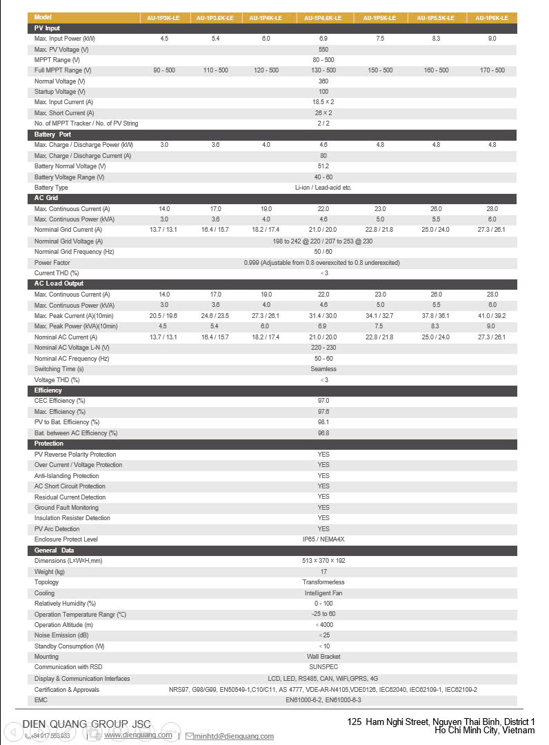 Bộ biến tần Hybrid Austa AU5KESL - LE (1pha 5kwp)
