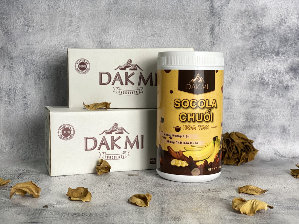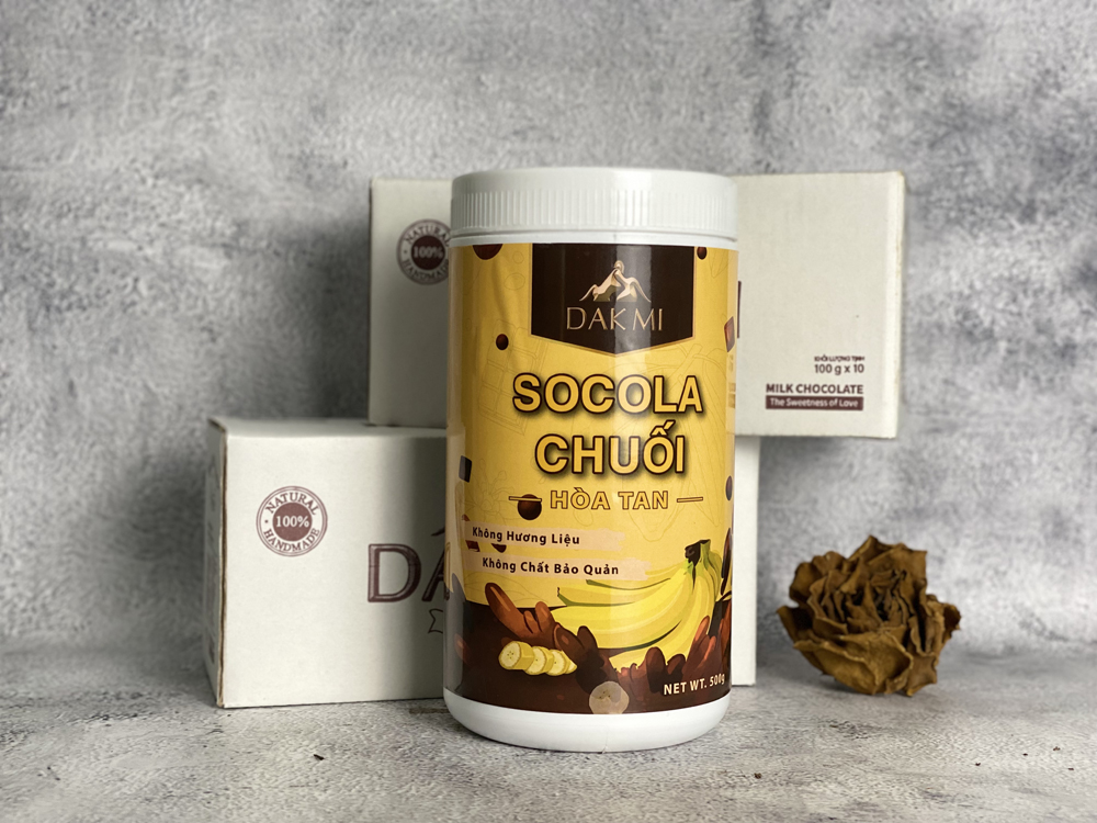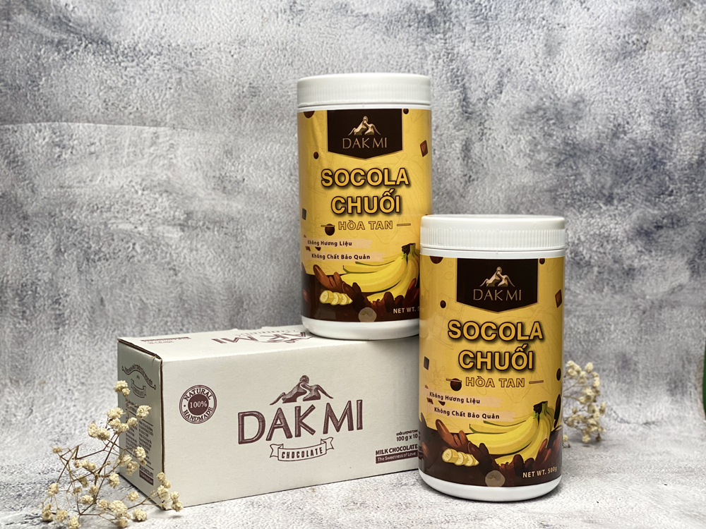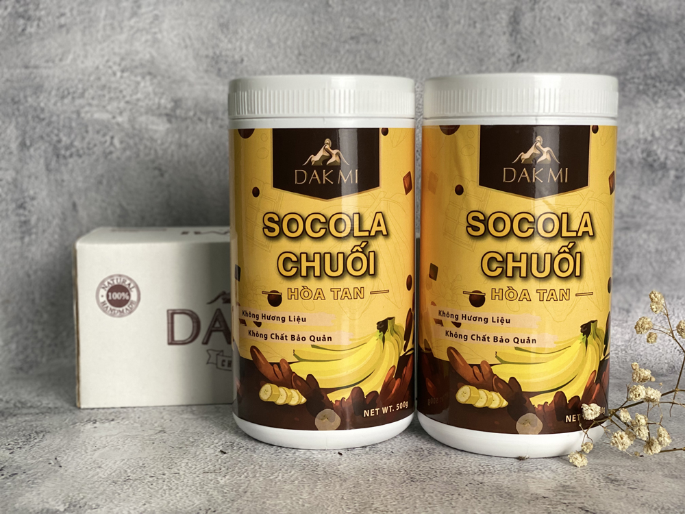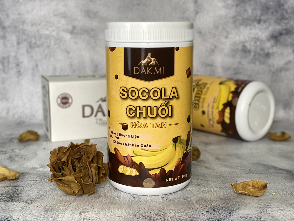 Bột Socola chuối hòa tan - 500g của DAK MI của damifram là một sản phẩm tiện lợi và ngon miệng cho những người yêu thích socola và hương vị chuối. Bạn có thể sử dụng bột Socola chuối hòa tan để pha nước nóng hoặc lạnh, làm bánh, làm kem, làm socola, v.v. Bột Socola chuối hòa tan của DAK MI có chứa bột cacao nguyên chất từ vùng Dakmil, một vùng nguyên liệu cacao và chuối nổi tiếng ở Việt Nam. Bạn có thể an tâm về chất lượng và an toàn thực phẩm của sản phẩm này. Bạn có thể mua bột Socola chuối hòa tan - 500g của DAK MI tại các cửa hàng bách hoá hoặc đặt hàng trực tuyến. Sản phẩm được tạo từ sự kếp hợp hoàn hảo của bột socola và bột chuối. Có thể nói đây là loại thức uống lần đầu có mặt trên thị trường. Sản phẩm hoàn toàn đến từ sự tự nhiên không hương liệu và không sử dụng chất bảo quản. Bạn cũng có thể tìm hiểu thêm về công dụng và cách dùng bột cacao nguyên chất và bột chuối.