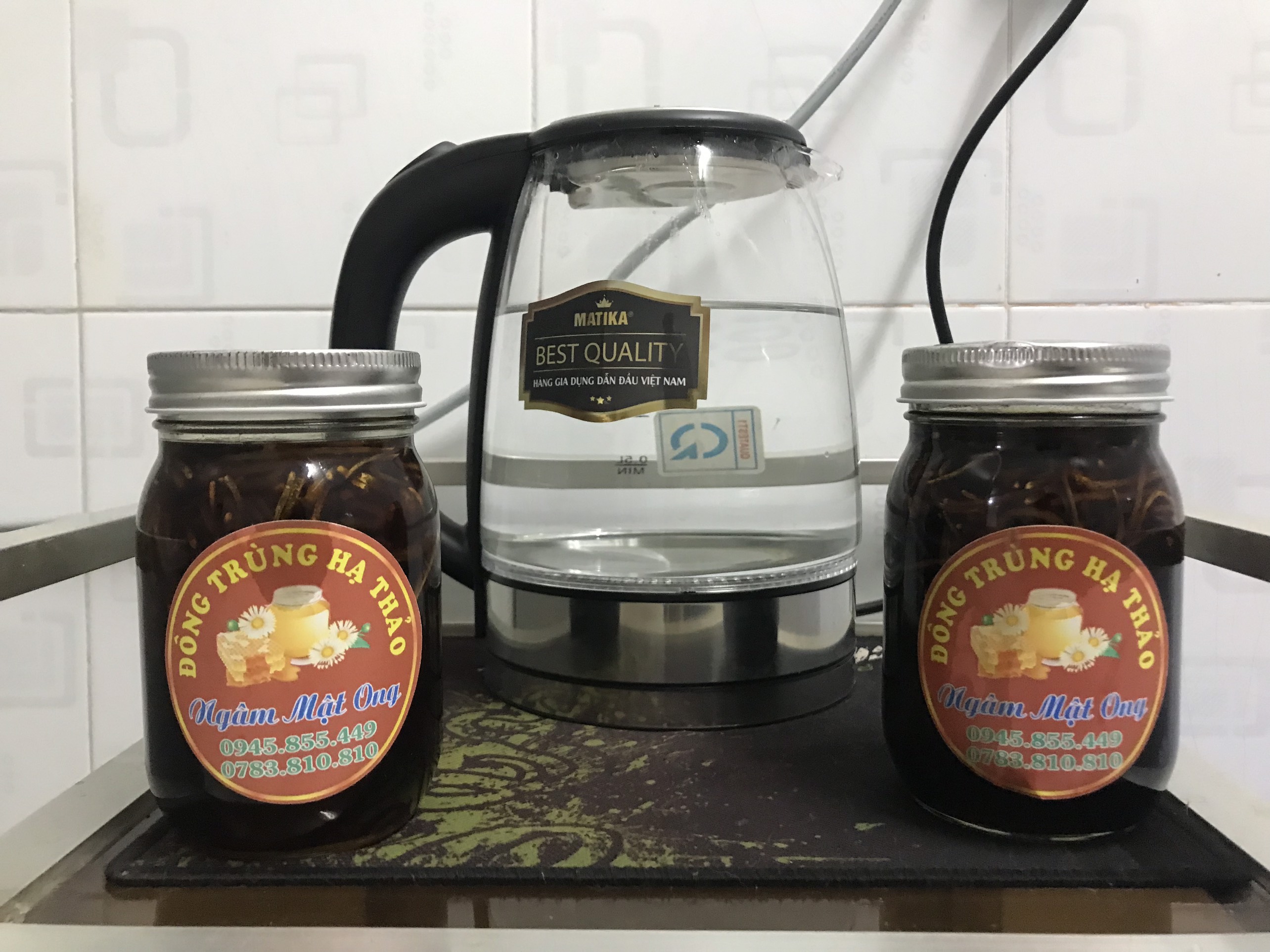 - Thành phần: Mật ong khoái, mật ong ruồi và 1 phôi đông trùng hạ thảo